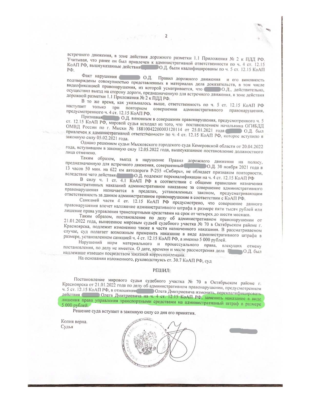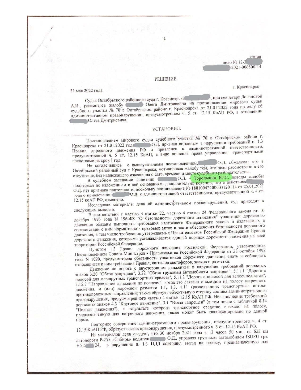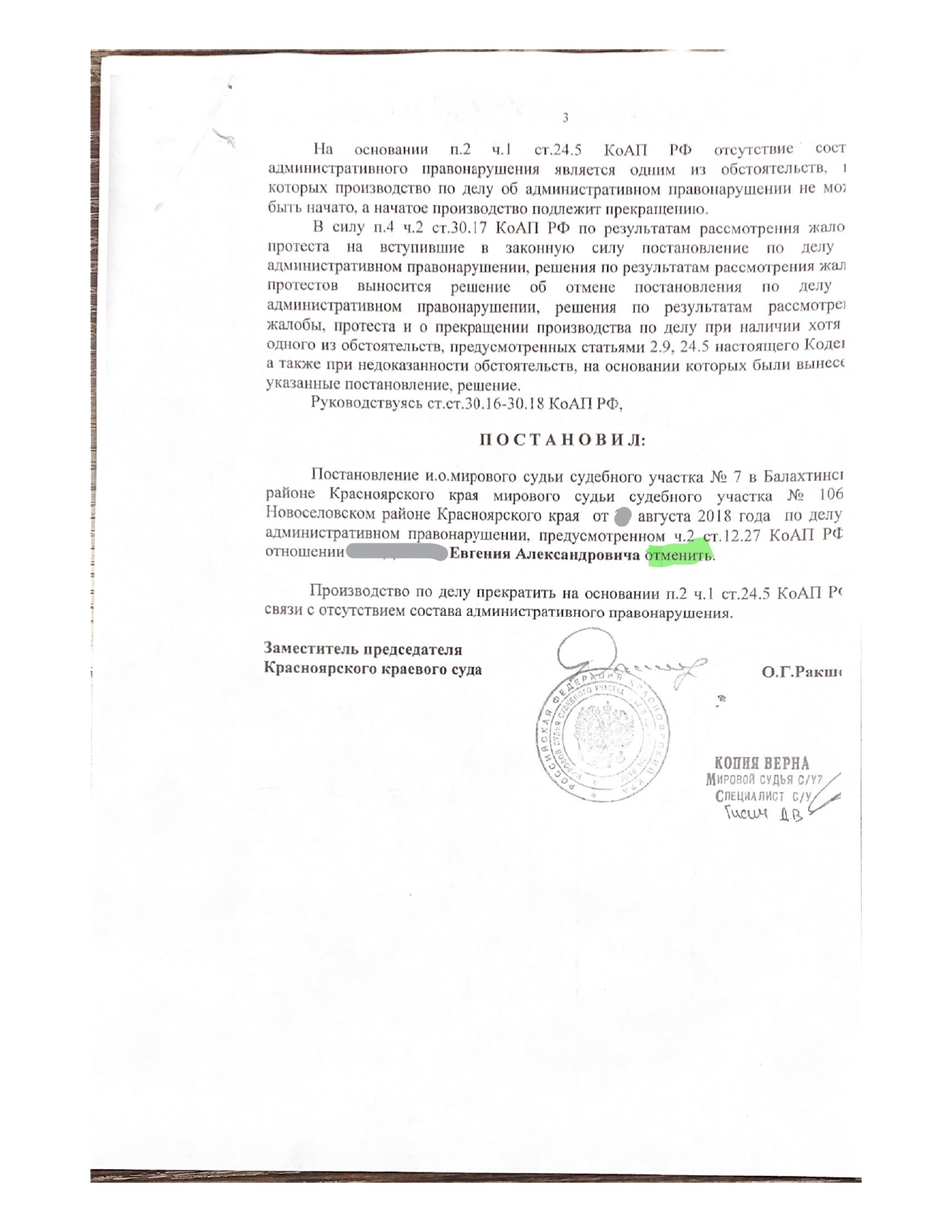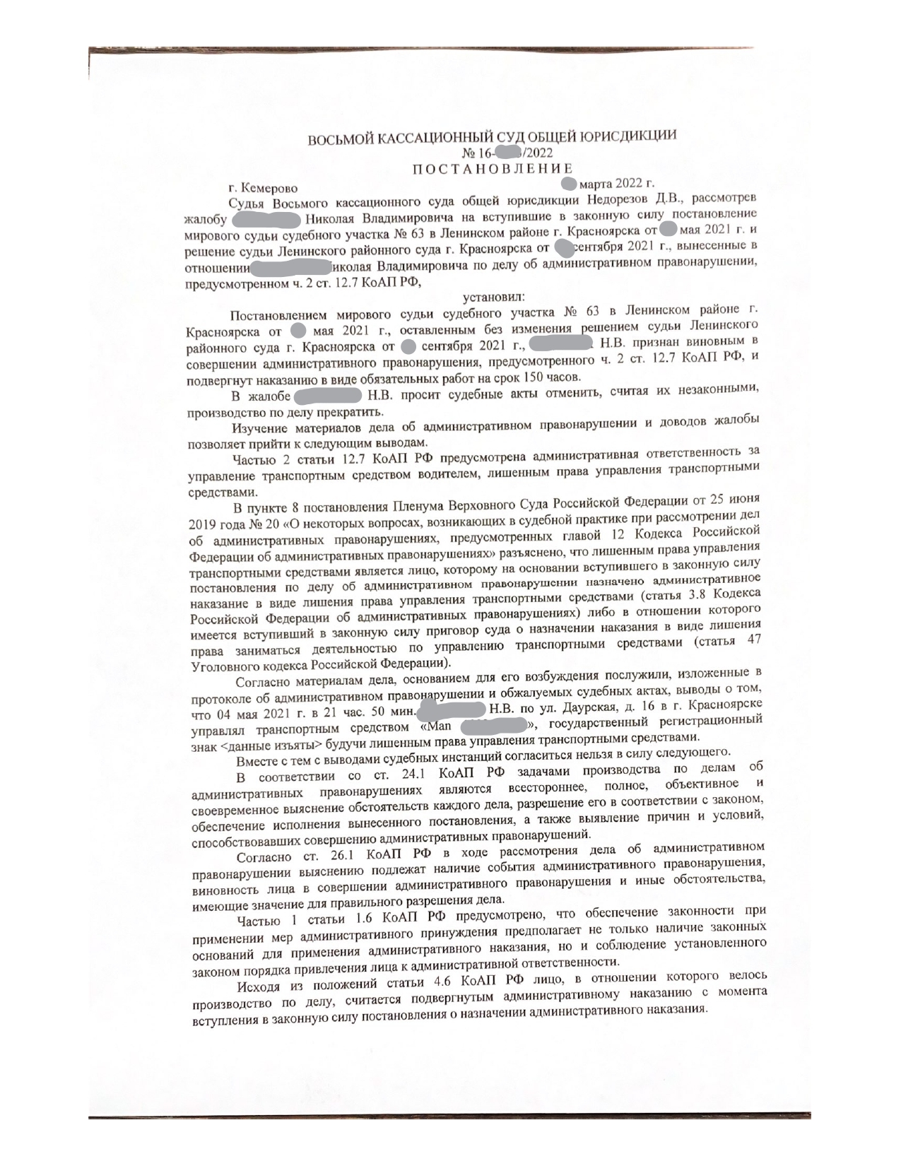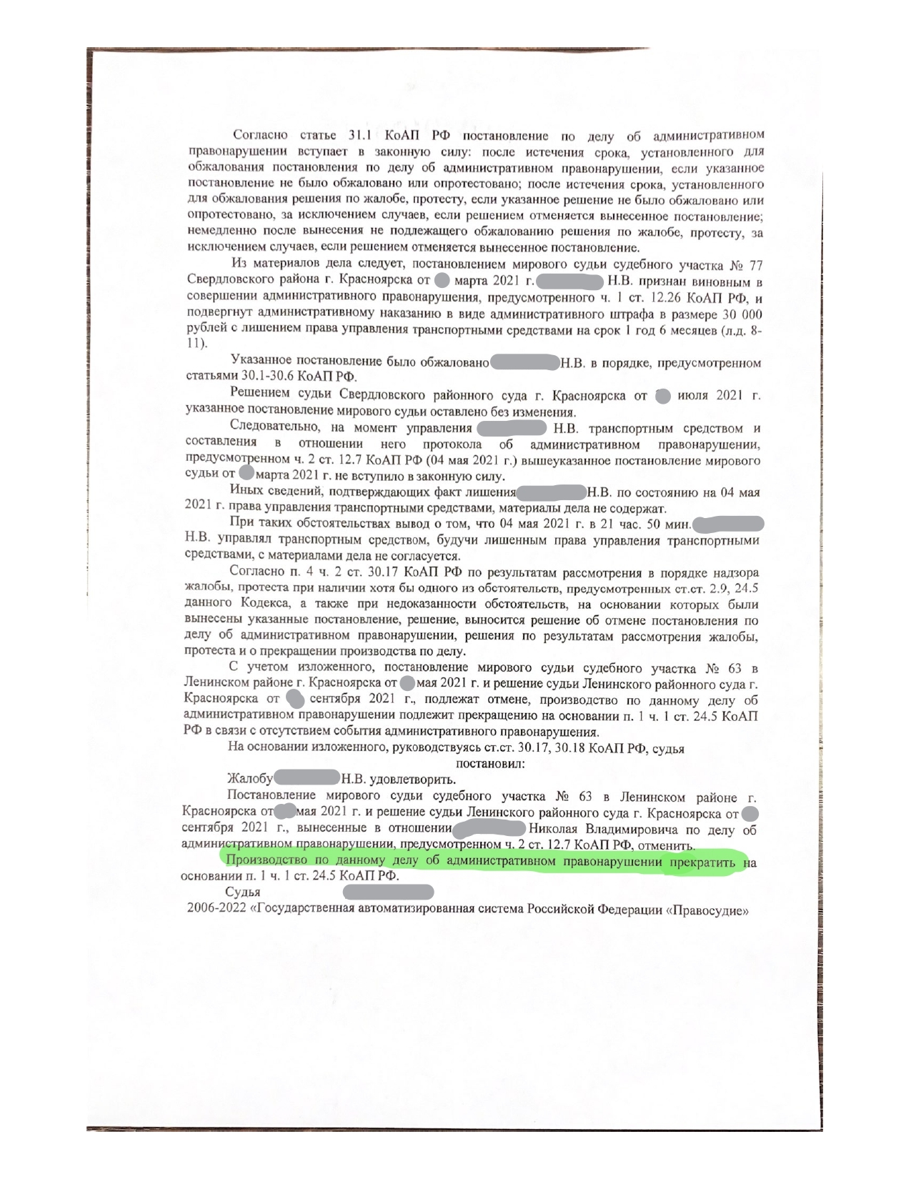 В Марте 2022 года помог доверителю отменить решение мирового и районного судов, об административном правонарушении. А именно, отменил штраф в размере 30000 рублей, вернул водительское удостоверение, и отменил наказание в виде обязательных работ на срок до 150 часов.